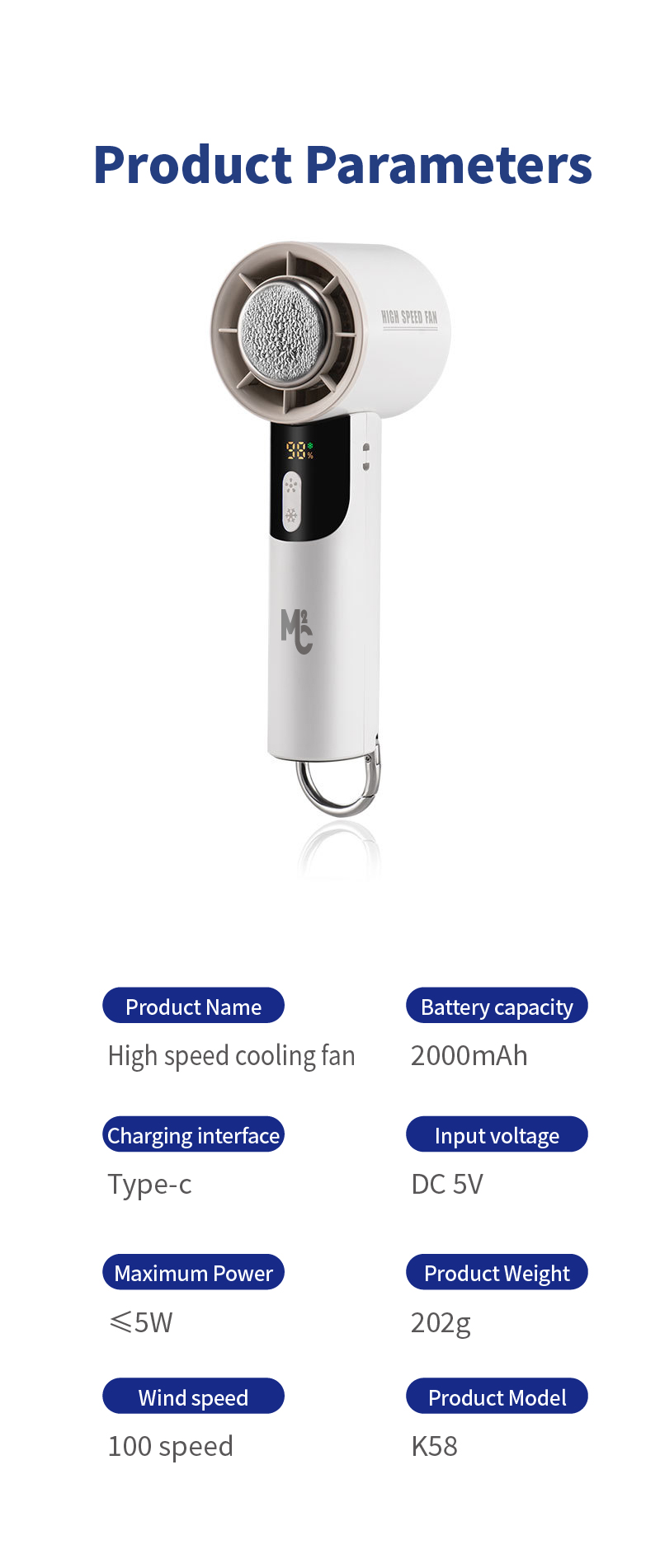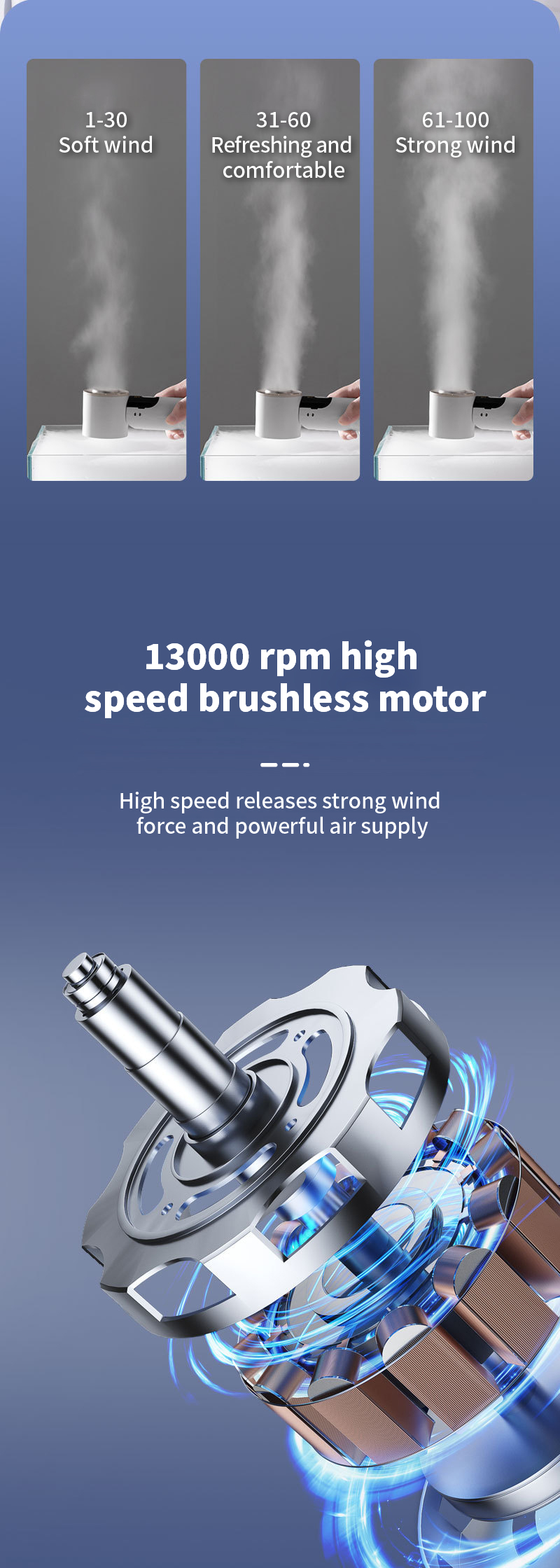 High-speed cooling handheld fan