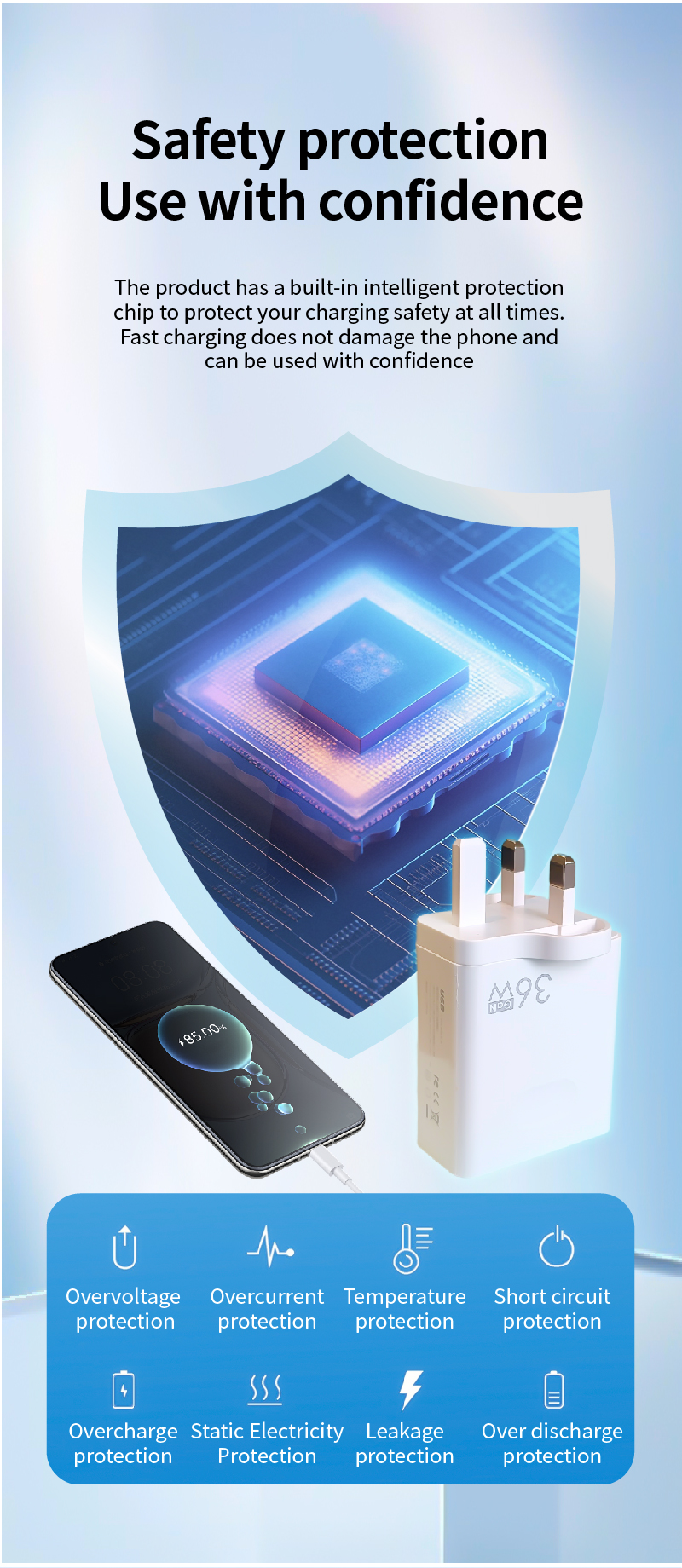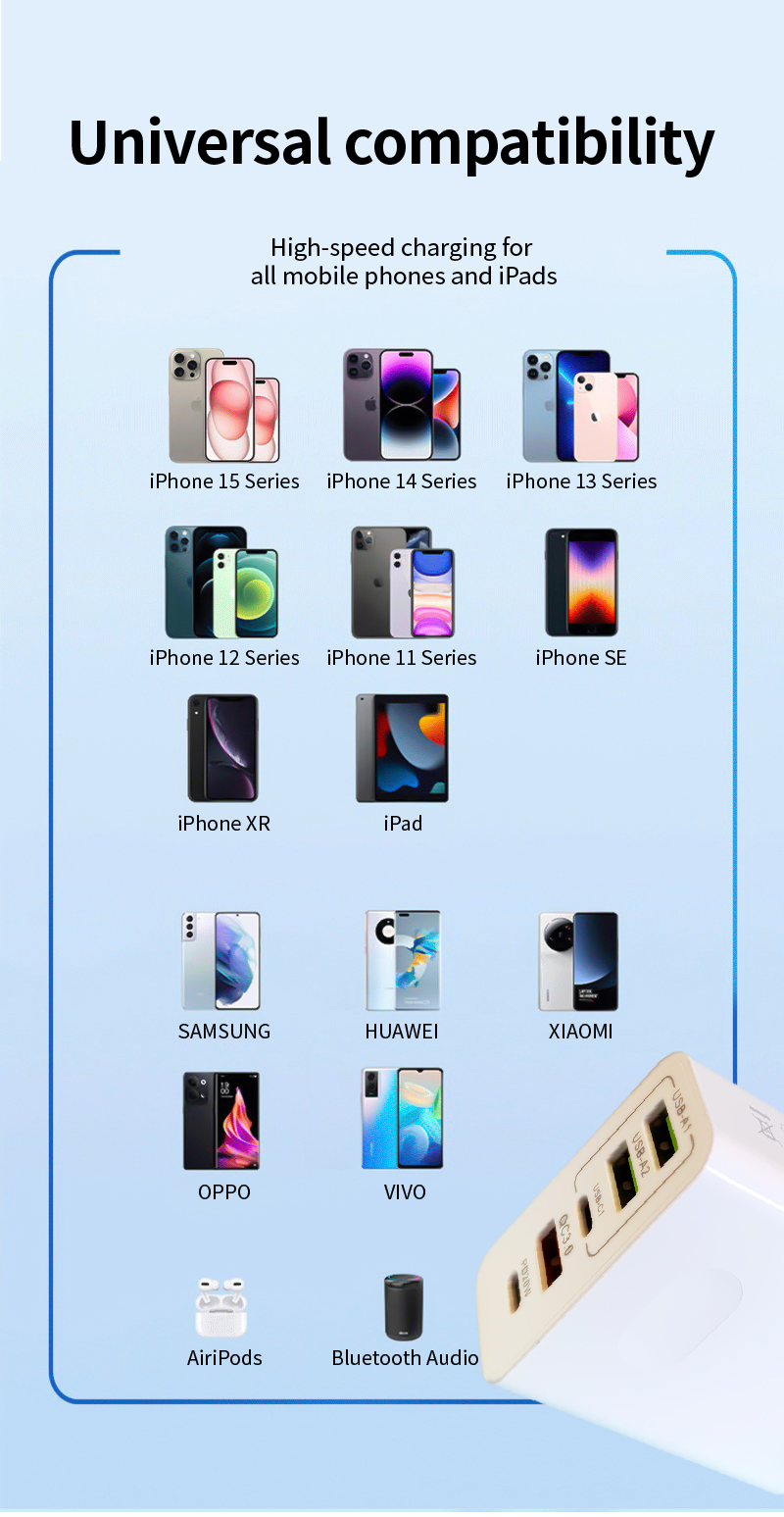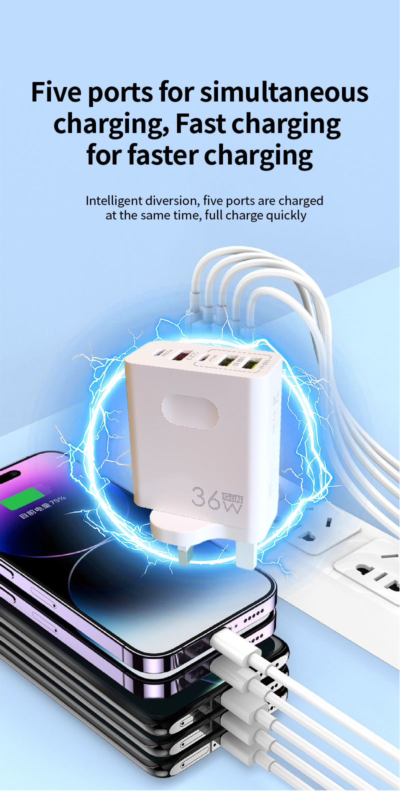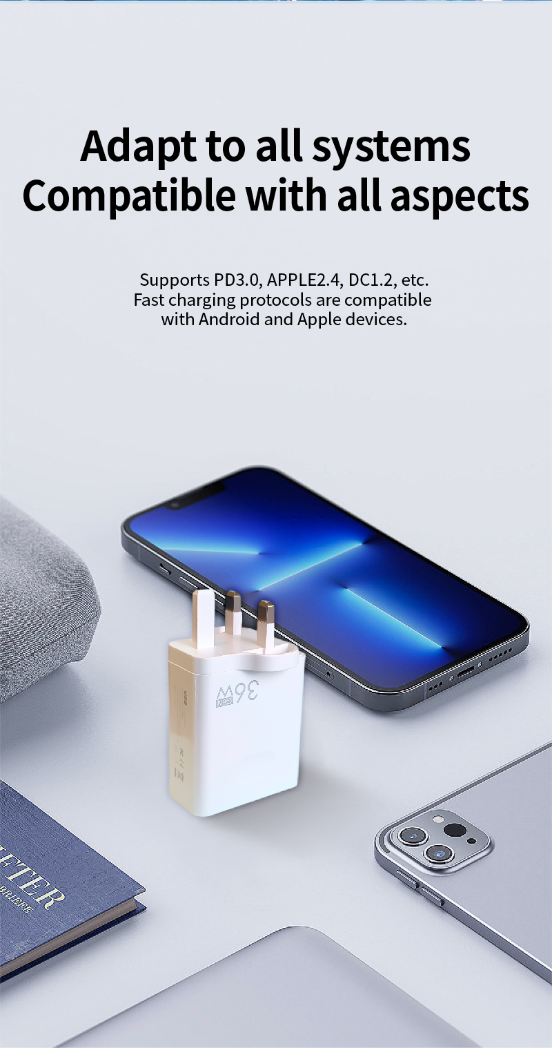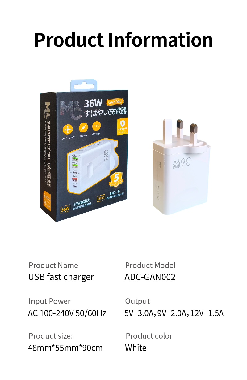 ADC - 36W Fast Charging Mobile Phone Charger with 3 USB + 2 PD