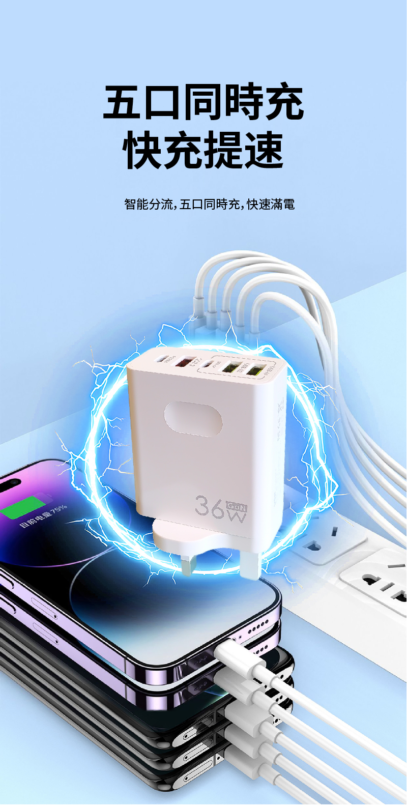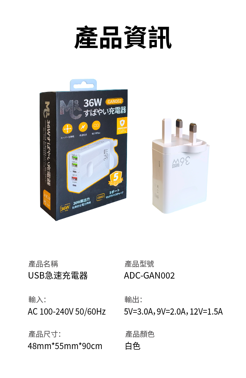 ADC-快充36W手機充電器3USB+2PD